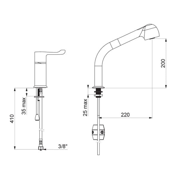 Wężyki PEX W3/8" i wzmocnione mocowanie 2 trzpieniami z Inoxu.