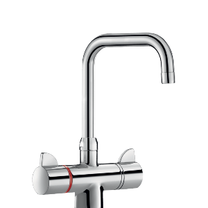 DELABIE SECURITHERM Dwuuchwytowa bateria termostatyczna do zlewu z ruchomą wylewką L.200 mm H. 230 mm