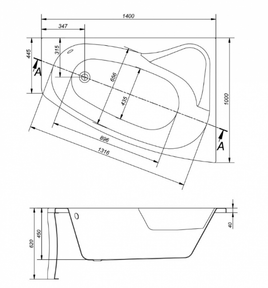 - Odpływ boczny przy krótszym boku