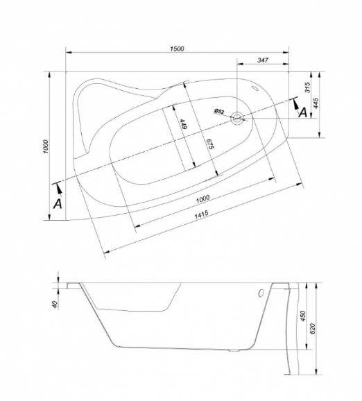 - Odpływ boczny przy krótszym boku