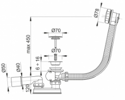 SIMPLE Przelew wannowy standardowy automatyczny, chrom