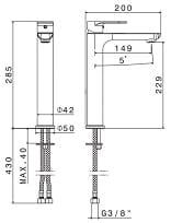 SLATE Bateria umywalkowa 28,5 cm z korkiem , chrom