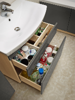 Szafka zmontowana, możliwość dokupienia nóżek i zestawu plastikowych organizerów