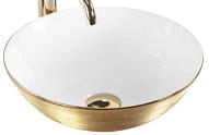 STELLA Umywalka nablatowa 36 cm , biała złoto szczotkowane
