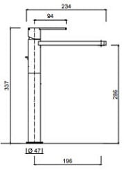Kolor chrom, wysokość 33,7 cm , długość wylewki 23,5 cm