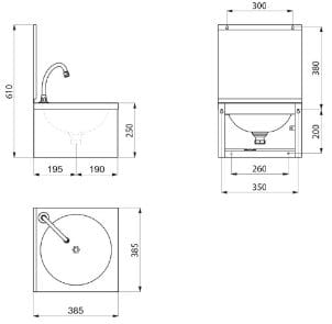 DELABIE SXS Umywalka ścienna uruchamiana kolanem