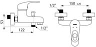 DELABIE Mechaniczna bateria wannowo-natryskowa.