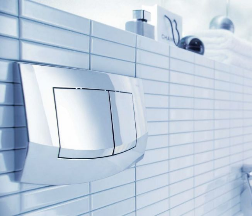 Przyciski uruchamiające TECEambia, dostępne zarówno w wersji pojedynczej jak i podwójnej, dzięki swym eleganckim, klasycznym kształtom oraz niewielkim wymiarom harmonijnie dopasowują się do każdej łazienki.