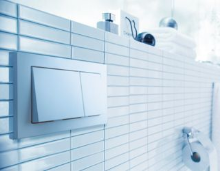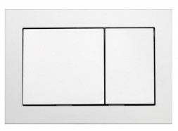 Klasyczny przycisk spłukujący z prostokątnymi klawiszami znajdujący zastosowanie w pomieszczeniach prywatnych i publicznych.
