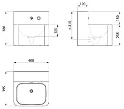 Średnica wewnętrzna umywalki: 400 x 385 mm.