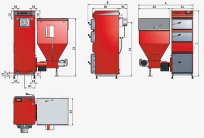 TEKLA Draco Stalowy kocioł jednopaleniskowy z automatycznym , ślimakowym podajnikiem paliwa , ekogroszek , 35 KW