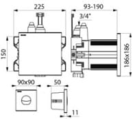 Płyta dostępu do mechanizmu 186 x 186 mm ze szczotkowanej stali nierdzewnej.