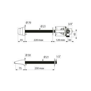 Wandaloodporny, zaścienny przycisk-pokrętło ≤ 220 mm.