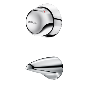 Czasowa bateria zaścienna do umywalki, uruchamiana przyciskiem-pokrętłem: