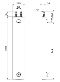 Zasilanie z góry prostymi zaworami odcinającymi Z½″.