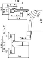Jednouchwytowa z wężem , uchwytem i słuchawką prysznicową .