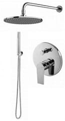 Zestaw natryskowy podtynkowy z serii Timea to propozycja włoskiej firmy Vema. Seria charakteryzuje się bogatą ofertą nowoczesnych baterii, idealnych do aranżacji łazienek w modnym, eleganckim stylu. Zestaw sprzedawany w kolorze chrom i czarnym matowym .