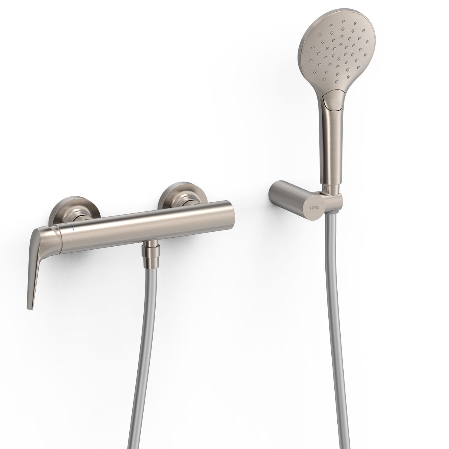 TRES FUJI Bateria jednouchwytowa ścienna prysznicowa, kolor stal