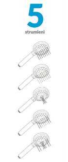 Posiada 5 – funkcyjny natrysk oraz gumki anty kamień ułatwiające utrzymanie czystości.