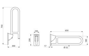 Uchylna poręcz łukowa Ø32 dla osób niepełnosprawnych.