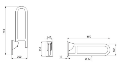 Służy do podpierania i podnoszenia się oraz w pozycji opuszczonej jako pomoc w przemieszczaniu się. Do WC i natrysku. W pozycji podniesionej umożliwia dostęp z boku.