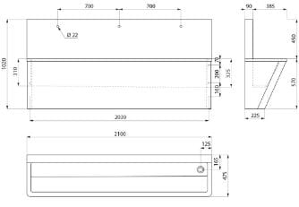 L. 2100 mm, 3 stanowiska. 3 otwory na armaturę Ø22 .