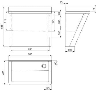 Umywalka chirurgiczna 70 cm , krótka ścianka , bez otworu , stal nierdzewna