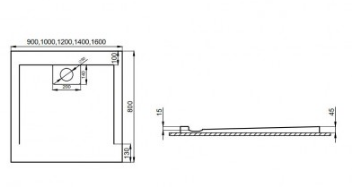 VEGAR CZARNY Brodzik akrylowy prostokątny posadzkowy 160x80x1,5 cm