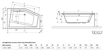 VESPER Wanna akrylowa asymetryczna P 160x100 cm , biała
