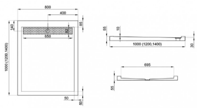 POLIMAT Brodzik prostokątny z rusztem