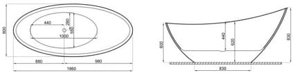 ZOE Wanna akrylowa wolnostojąca 180 x 80 cm , popiel