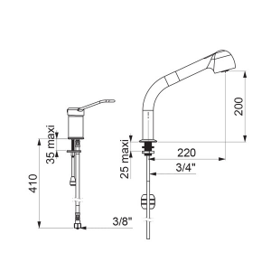 Wyciągana, 2-strumieniowa słuchawka z przełącznikiem strumienia (sitko/deszcz).