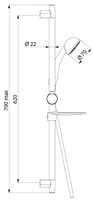 - chromowany drążek natryskowy Ø18 całkowita długość 610 mm i rozstaw 570 mm,