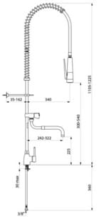 Kompletny zestaw do mycia wstępnego z zaworem czerpalnym przystosowany do intensywnego użycia w kuchni profesjonalnej.