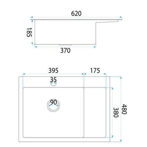 - Długość zlewozmywaka (mm)