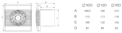 Wentylator standardowy czujnik wilgoci. Dostępny w wersji Ø 100 lub Ø 120 lub Ø 150